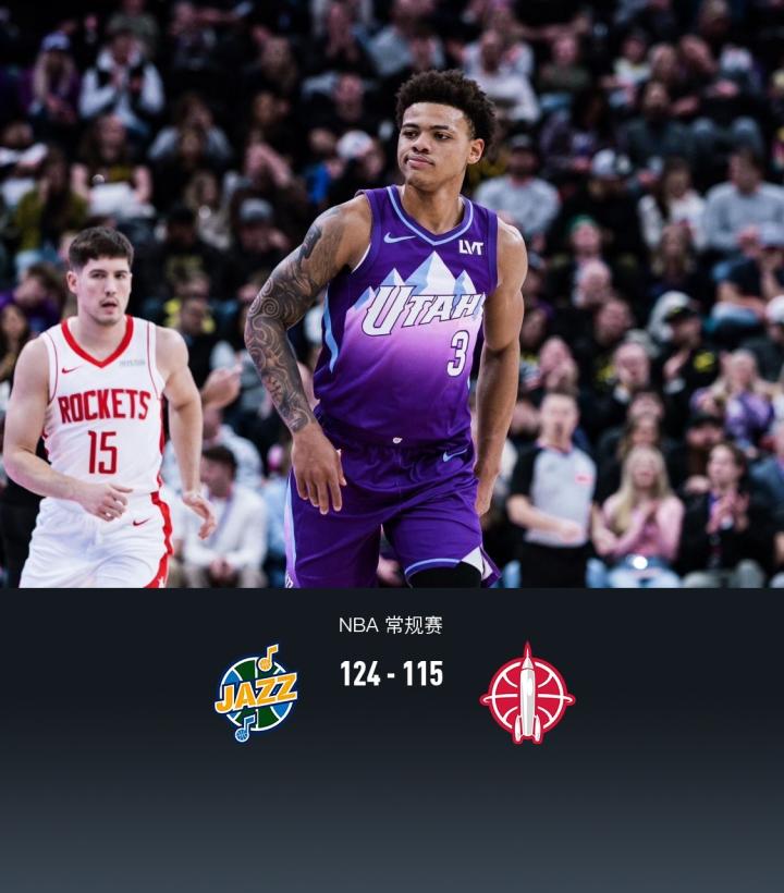 第四节爵士基扬特-乔治拿下8分,火箭杰伦-格林拿下8分,最终爵士124-115战胜火箭