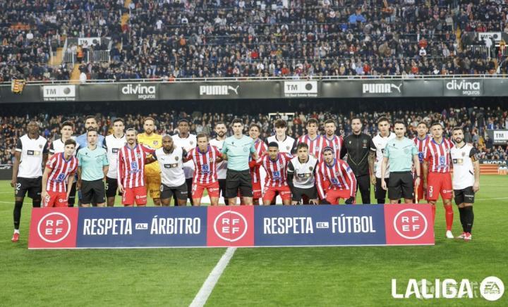 西甲第25轮马德里竞技和瓦伦西亚的比赛前,两队首发球员在合影环节时打出了标语,上面写道:“尊重裁判,尊重足球。”