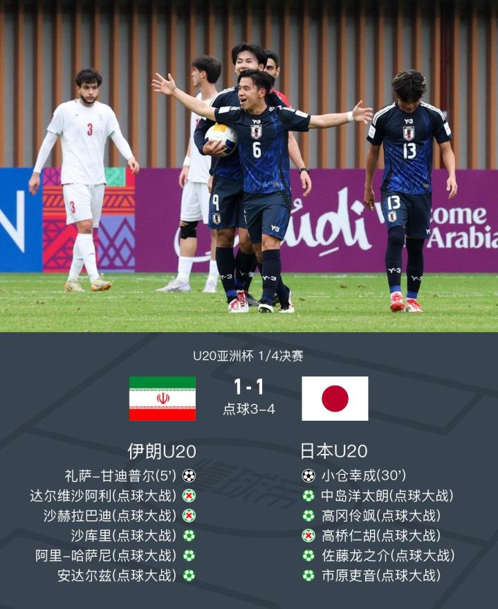 U20日本5-4点杀伊朗U20晋级4强,市原吏音罚入制胜点球