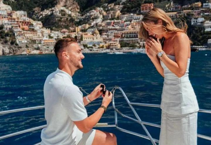 哈伍德-贝利斯当时租了一艘游艇,就在风景如画的阿马尔菲海岸附近,莉娅在社媒上发布了一系列照片庆祝这一时刻,并附上文字:“我迫不及待想嫁给你。”