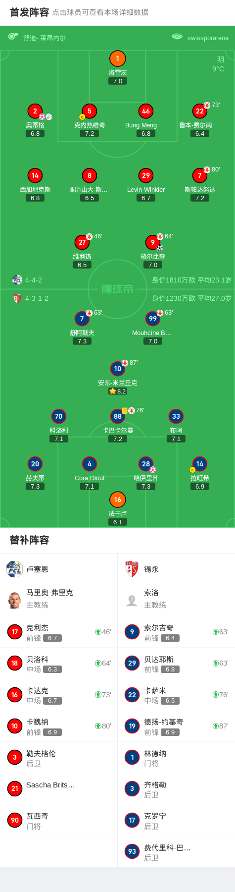 卢塞恩2-1锡永,格尔比奇建功