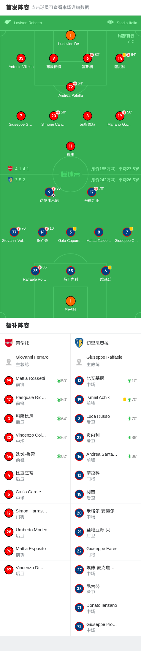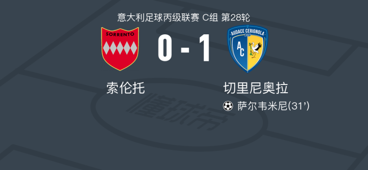 切里尼奥拉1-0索伦托取意丙6连胜,萨尔韦米尼打进全场唯一进球战报bot @懂球帝2025-02-24 02:21北京时间2月24日意大利足球丙级联赛 C组 第28轮,索伦托主场对阵切里尼奥拉。切里尼奥拉萨尔韦米尼破门。最终比分索伦托 0-1 切里尼奥拉。点击查看本场比赛详细数据>>点击查看意丙完整积分榜>>精彩瞬间第31分钟,切里尼奥拉球员萨尔韦米尼打入一球。 球队阵容 技术统计 展开更多