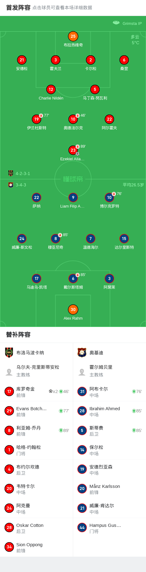 第53分钟,布洛马波卡纳球员Ezekiel Alladoh打入一球。