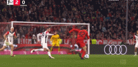 第68分钟,穆西亚拉外围兜射,皮球打高了