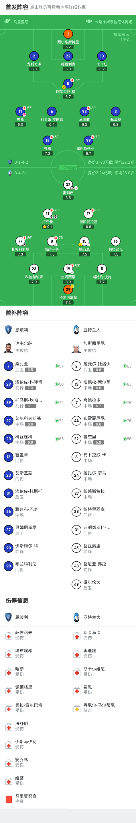 第43分钟,卢克曼拉球过掉门将推空门,亚特兰大3-0