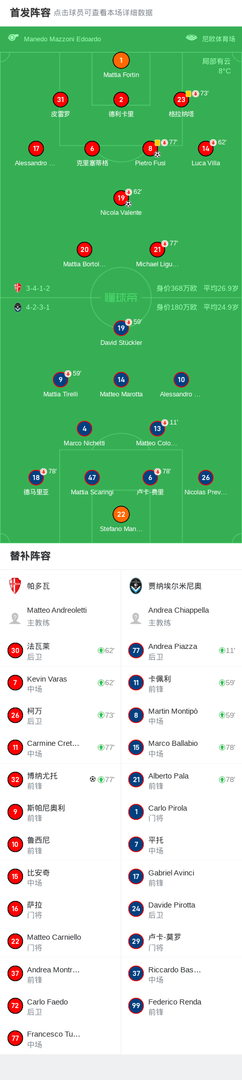 第70分钟,帕多瓦球员Kevin Varas助攻Pietro Fusi打入一球。