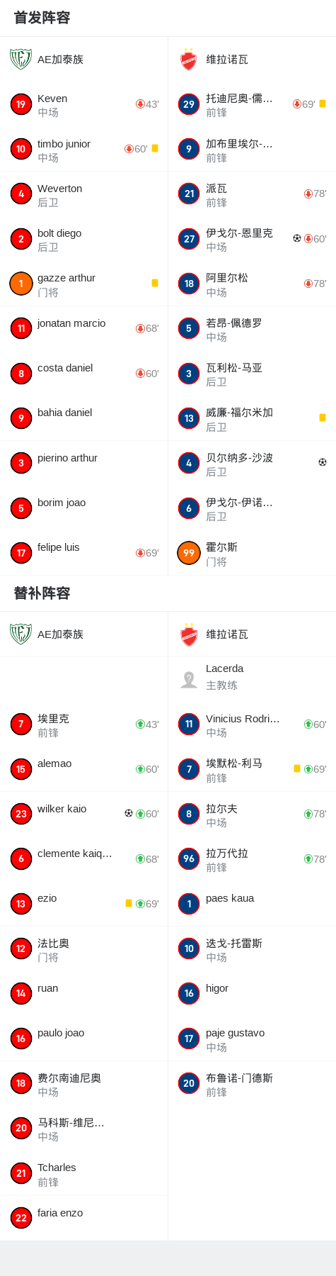 第66分钟,AE加泰族球员wilker kaio打入一球。