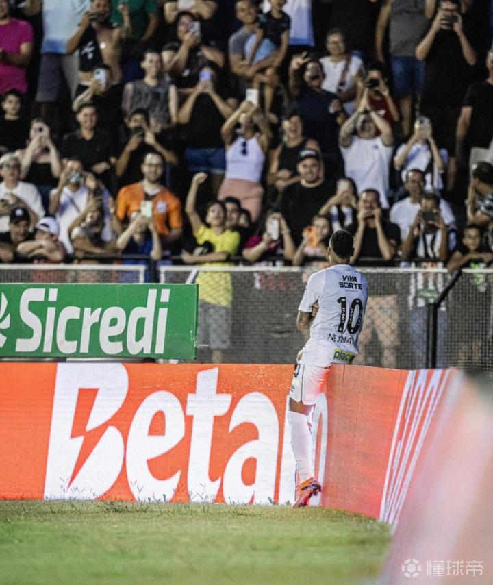 比赛中,内马尔利用角球直接破门得分,进球后,内马尔直接坐在场边的广告牌上庆祝。