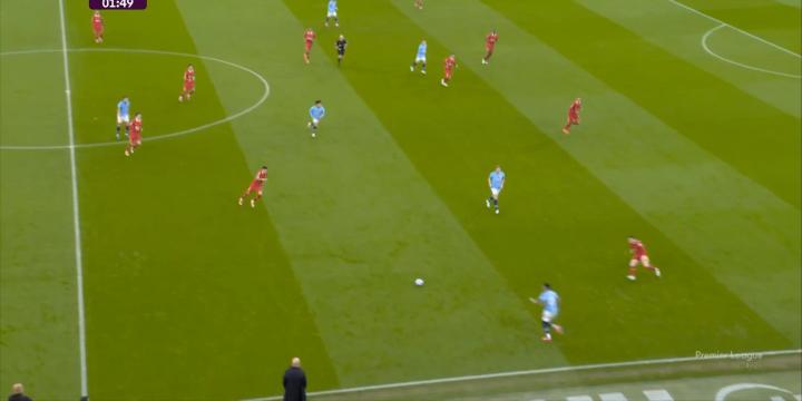 此球一进,利物浦在客场的处境就变得优渥许多,而曼城的压力则逐步累积,尽管德布劳内还在努力跟上队友们,其他人们也曾在越位的情况下打穿右肋: