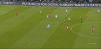 开场2分钟,德布劳内就和萨维尼奥进行配合,从右肋插上,送出传中: