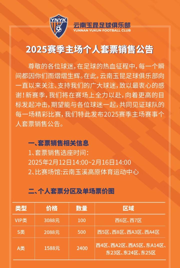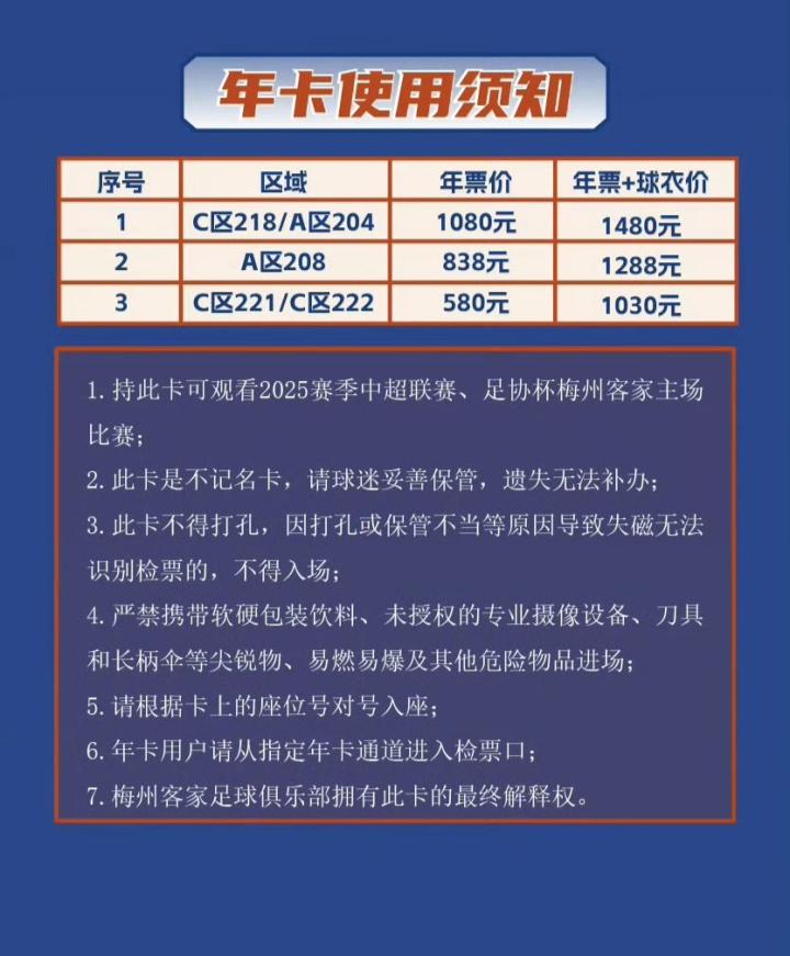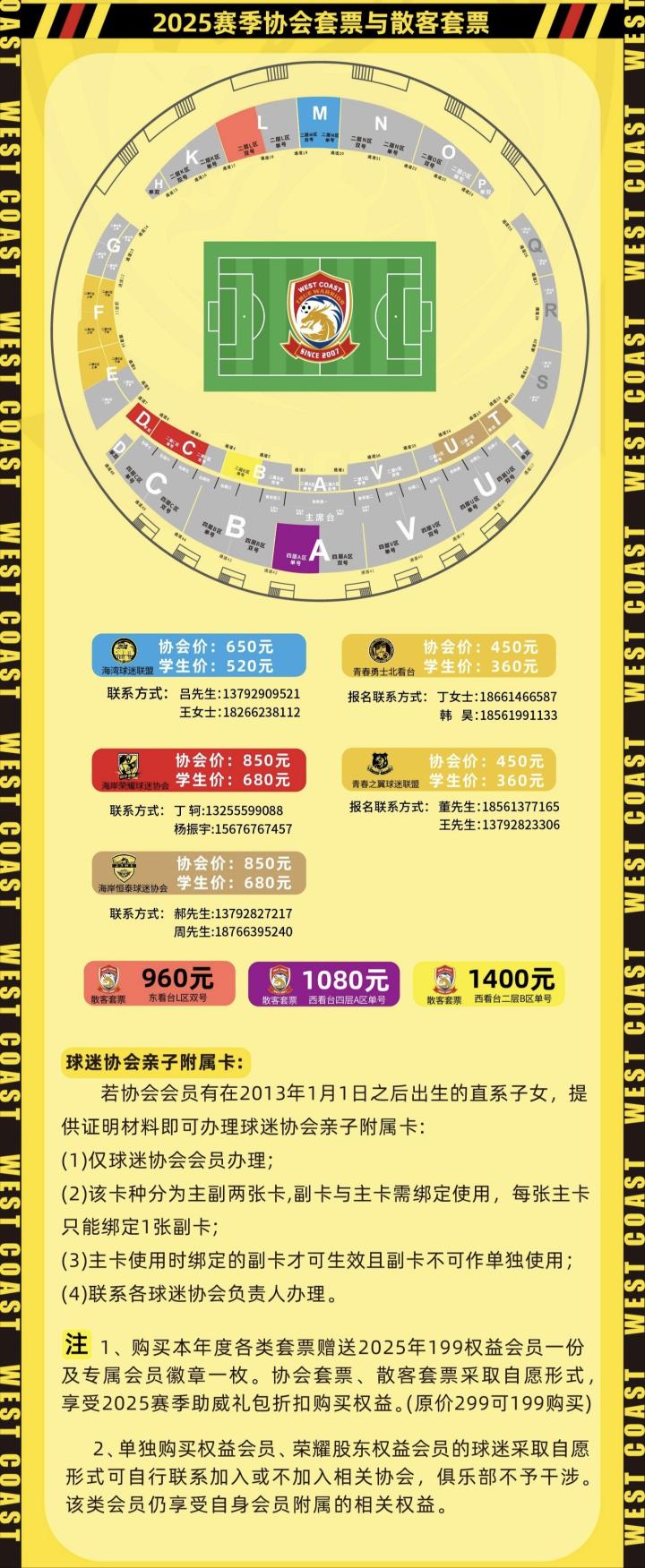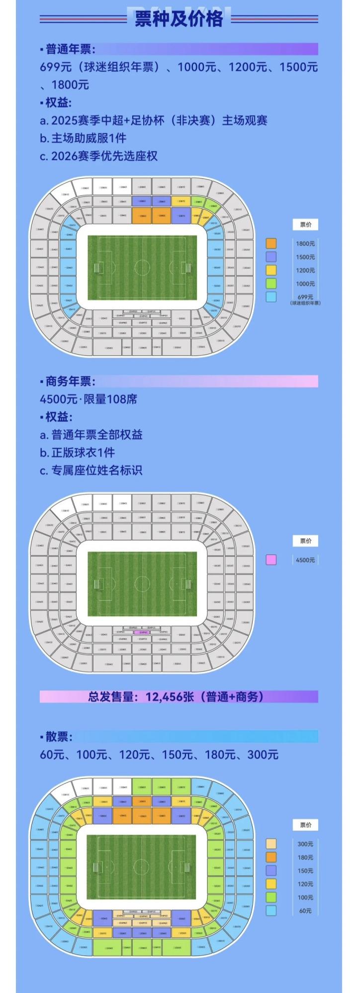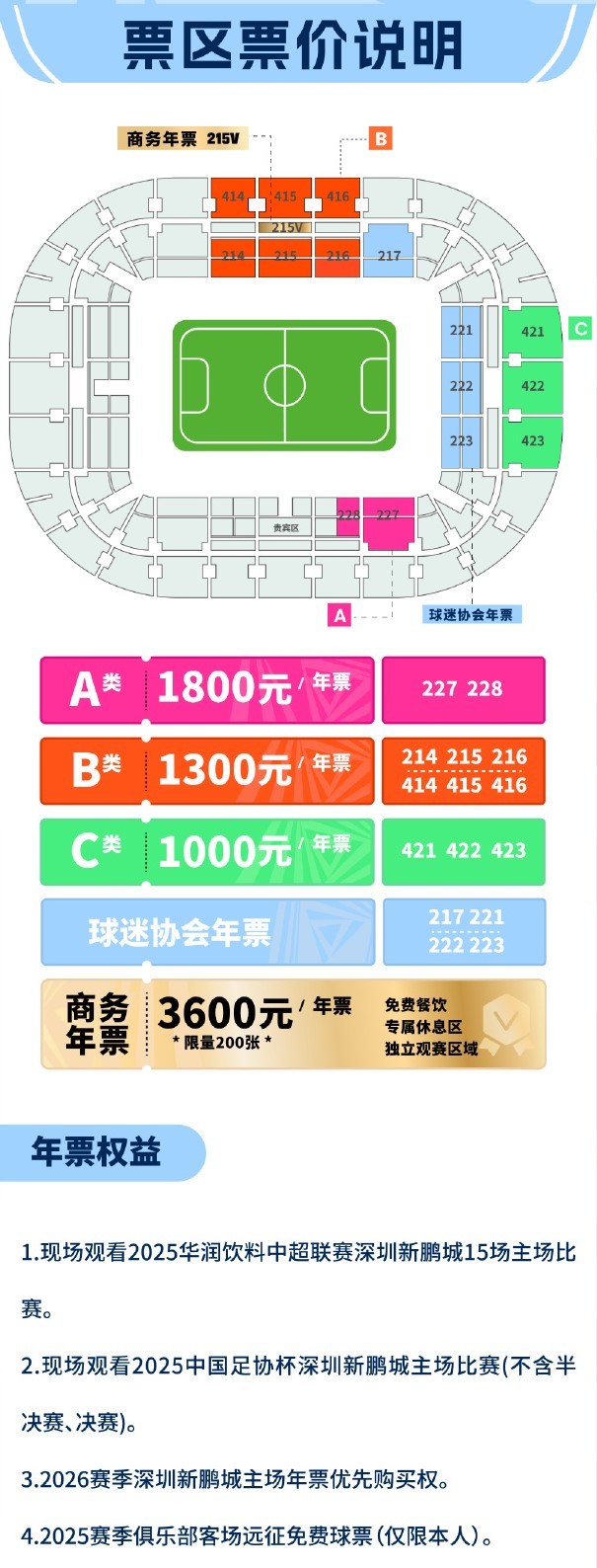 2025赛季中超联赛主场比赛、足协杯八强之前的主场比赛(足协杯八强之后的比赛以及亚冠赛事的享有优先购票权)