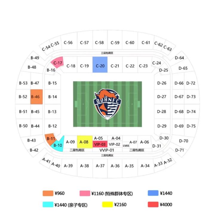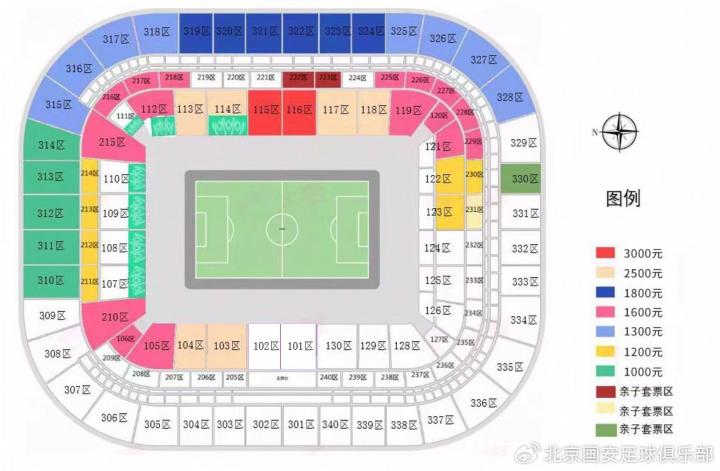4500元、1800元、1500元、1200元、1000元、699元(球迷组织套票)