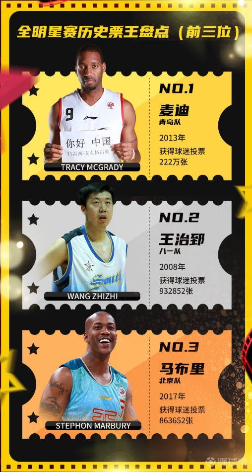 CBA全明星数据盘点:朱芳雨连续15次入选;麦迪获得222万张球迷投票