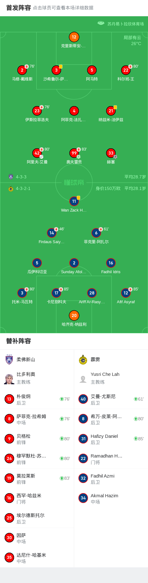 上半场补时第1分钟,柔佛新山球员阿里夫-艾曼助攻赫塞打入一球。