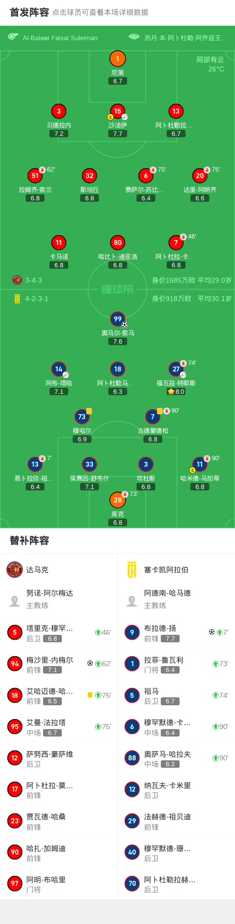 第63分钟,塞卡凯阿拉伯球员福瓦兹-特耶斯助攻奥马尔-索马打入一球。