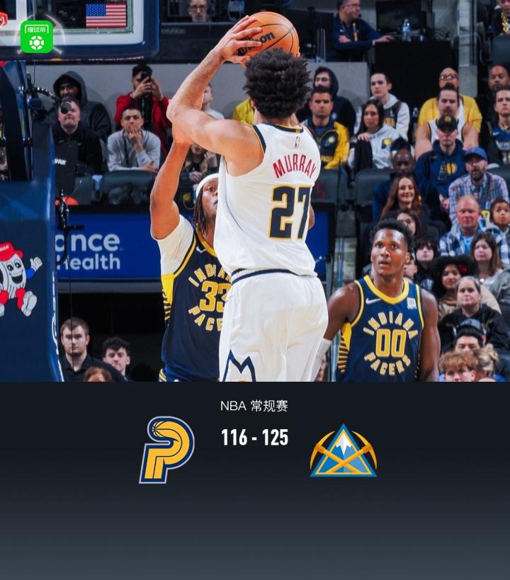 第四节步行者哈利伯顿拿下10分,掘金布劳恩拿下10分,最终步行者116-125不敌掘金
