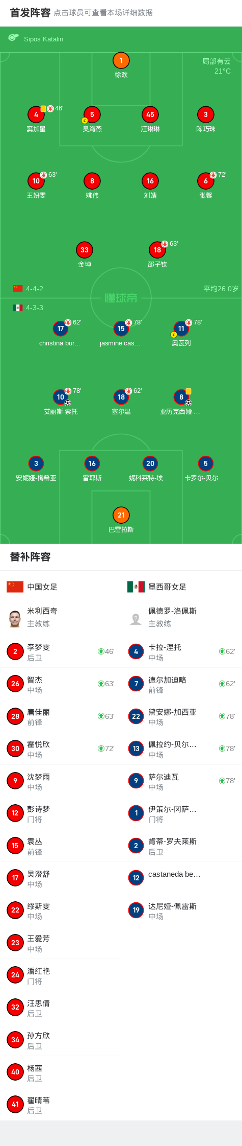 墨西哥女足2-0中国女足,艾丽斯-索托建功,奥瓦列破门