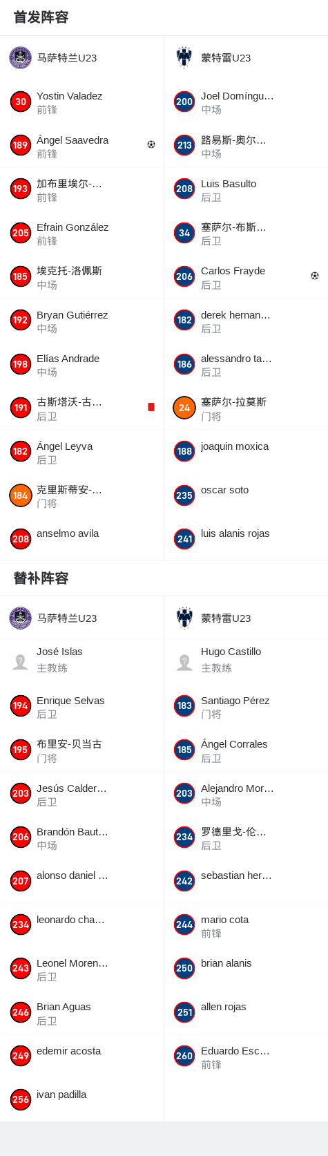 马萨特兰U23 4-3蒙特雷U23