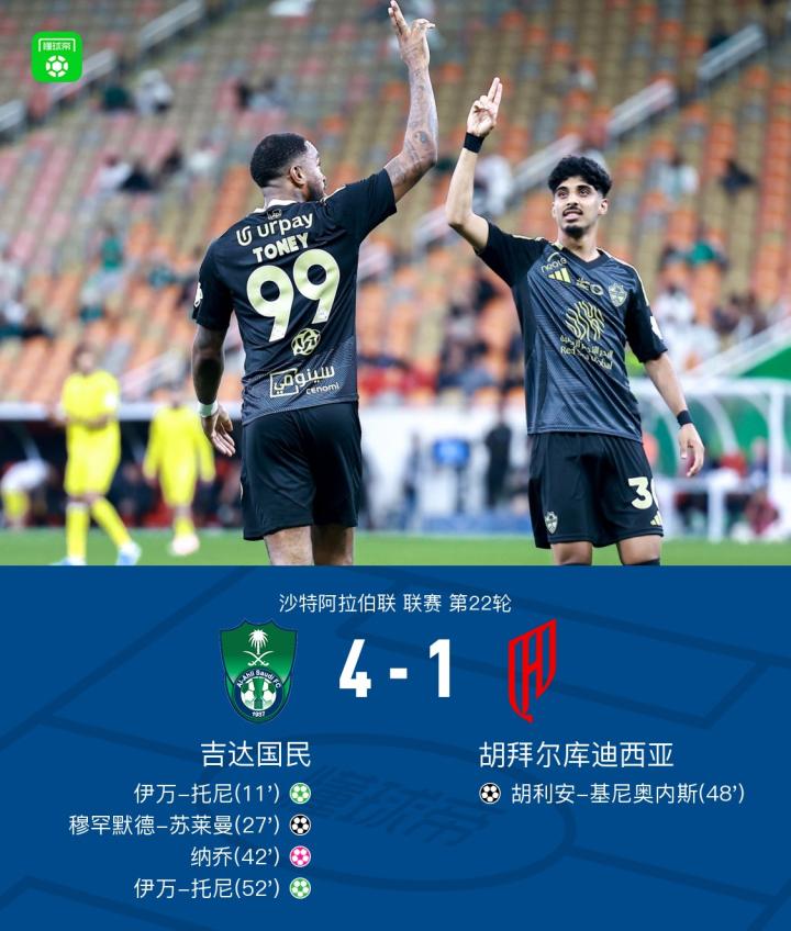 吉达国民4-1胡拜尔库迪西亚,伊万-托尼点球双响,纳乔乌龙