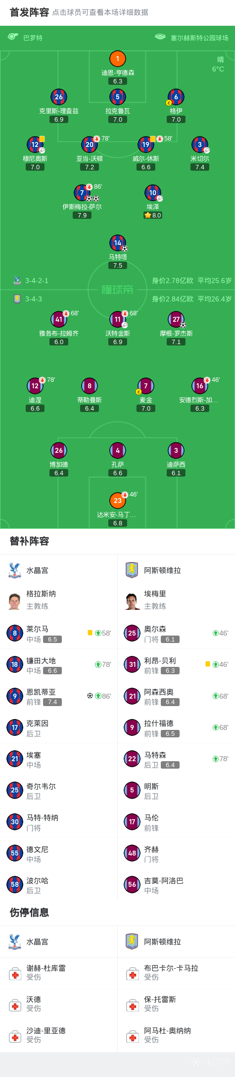 水晶宫4-1维拉,萨尔梅开二度,罗杰斯灵性转身抽射破门