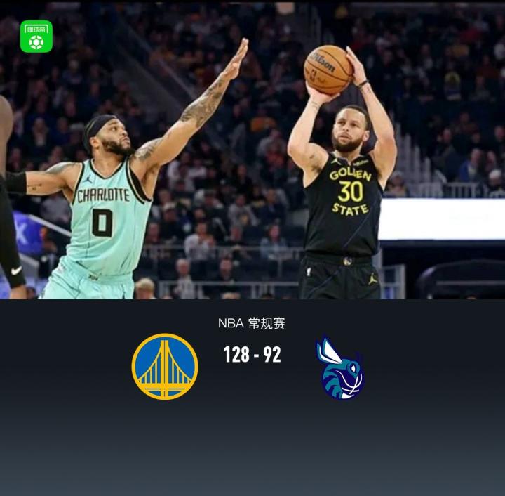 勇士128-92大胜黄蜂,库里三节15+6,巴特勒6+8+5