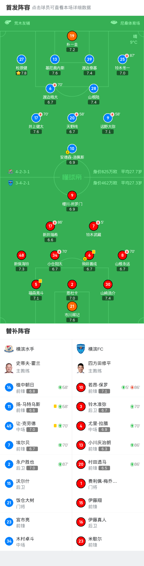 横滨水手0-0横滨FC,两队破门乏术战报bot2025-02-26 19:56在北京时间2月26日进行的日本职业联赛J1联赛第3轮比赛中,横滨水手坐镇主场迎战同城对手横滨FC。尽管双方在场上都创造了不少机会,但最终未能打破僵局,比赛以0-0的比分结束。两队在这场比赛中均展现了顽强的防守和积极的进攻意图,但均未能取得进球。横滨水手与横滨FC在本轮比赛中握手言和,各取一分。点击查看本场比赛详细数据>>点击查看日职联完整积分榜>> 球队阵容 技术统计 展开更多