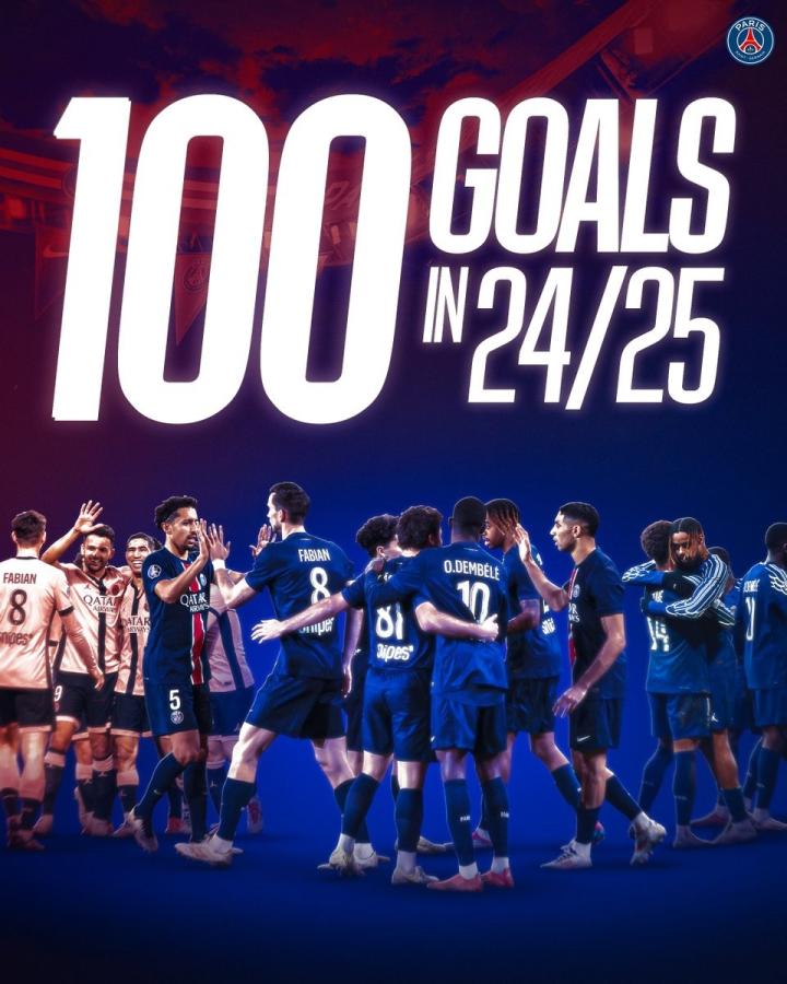 巴黎本赛季各项赛事已打入100球,成五大联赛第五队ETChalmers @懂球帝2025-02-27 05:54法国杯1/4决赛,巴黎圣日耳曼客场对阵法丙球队布里欧齐,在马尤卢破门将比分扩大至6-0后,巴黎圣日耳曼本赛季各项赛事已打入100球。此役客场对阵布里欧齐,马尤卢在比赛第66分钟破门,帮助巴黎圣日耳曼取得6-0领先。至此,巴黎圣日耳曼本赛季各项赛事38场比赛已打入100球。巴黎圣日耳曼成为本赛季第五支达成各项赛事100球里程碑的五大联赛球队,前四支分别是巴塞罗那、皇家马德里、利物浦和拜仁慕尼黑。展开更多