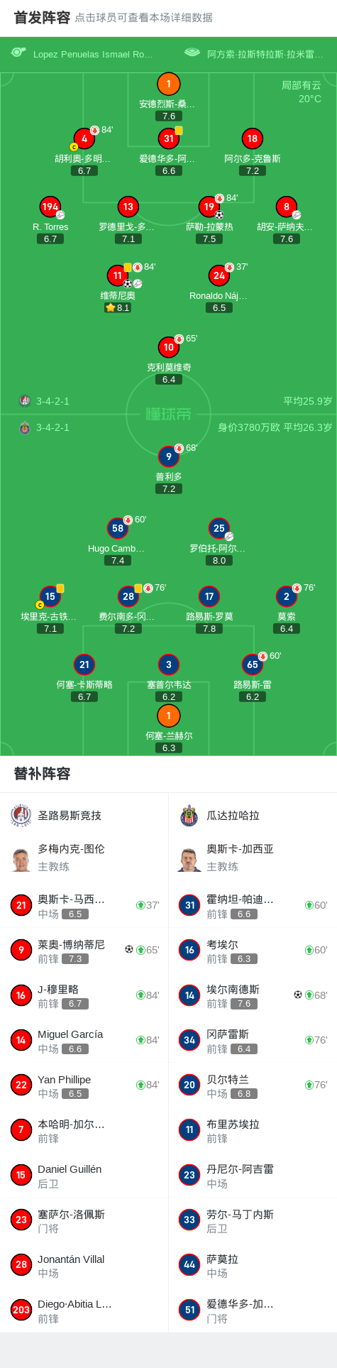 第56分钟,圣路易斯竞技球员R. Torres助攻维蒂尼奥打入一球。