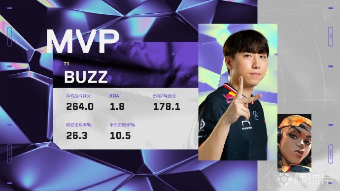 下半场手枪局,T1夹A双方2换2,BuZz残局吃震还完成定位打出四杀,5-8。