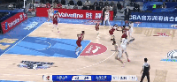 闫鹏飞顺下隔着周琦单臂飞扣