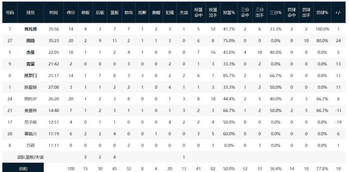 北京北汽扎卡里-纳托尔20分3板8助,周琦20分11板,尤金-杰曼18分2板4助,曾凡博14分7板7助;
