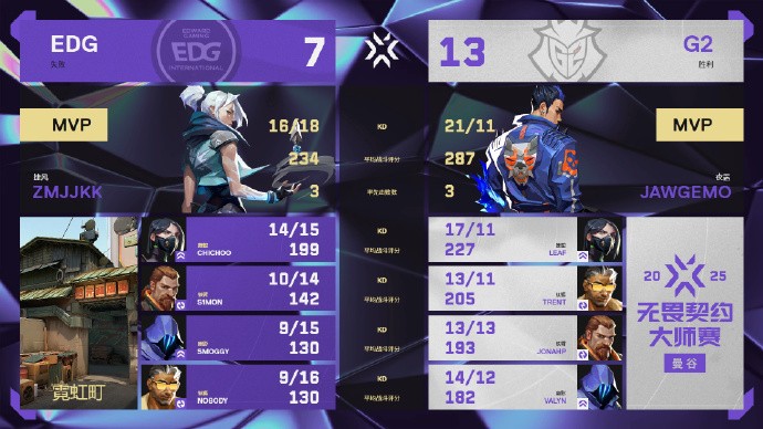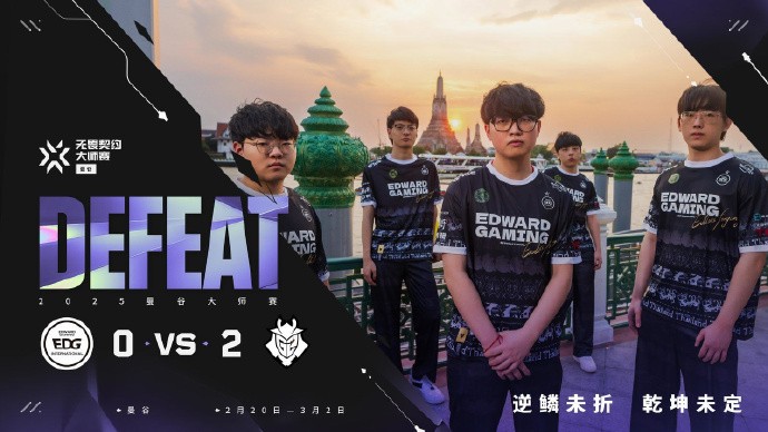 北京时间2月28日,无畏契约曼谷大师赛胜者组决赛,EDG连续两张地图被G2战术压制,大比分0-2告负,落入败者组。