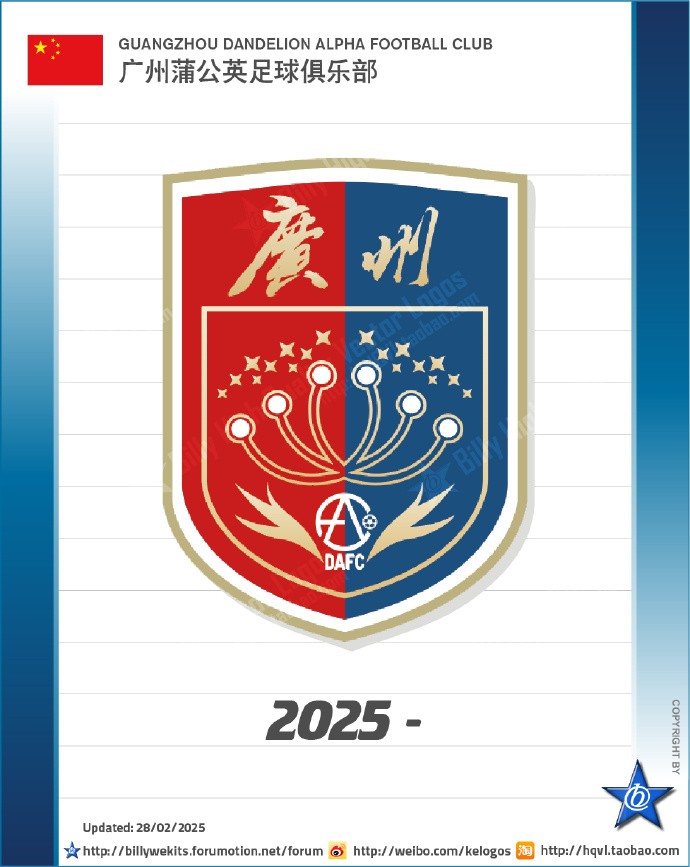 网传广州蒲公英新队徽:由圆形变更为盾形,顶部突出广州二字盖坦9 @懂球帝2025-02-28 21:28博主“Bi77y”晒出中乙新军广州蒲公英的新队徽,队徽外形由圆形变更为盾形,顶部突出了“广州”二字,蒲公英置于正中间。博主写道:广州蒲公英足球俱乐部推出新队徽,整体外形由圆形变更为盾形,红蓝箭条变更为红蓝对半色,顶部突出显示广州二字,蒲公英置于正中间,散发着星星点点的种子。原队徽的AFC图形缩小至最下方。广州蒲公英旧队徽展开更多