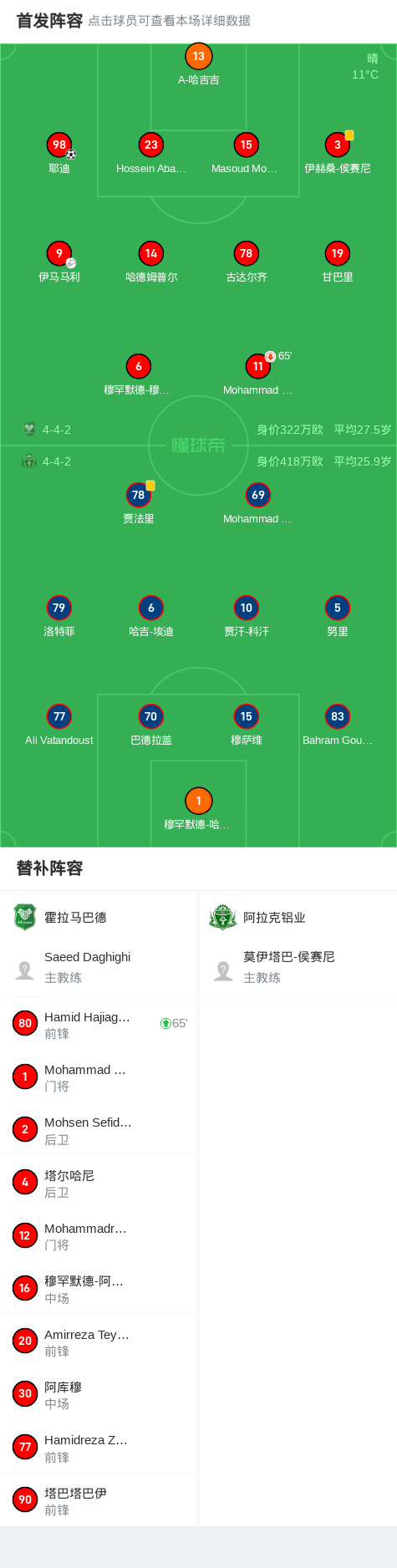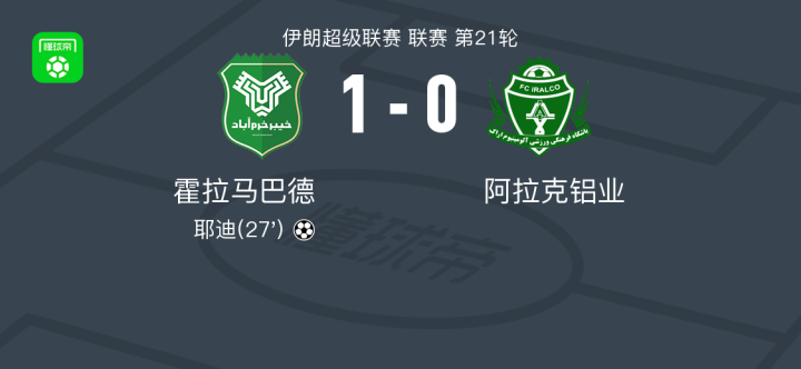 霍拉马巴德1-0阿拉克铝业,耶迪打进全场唯一进球