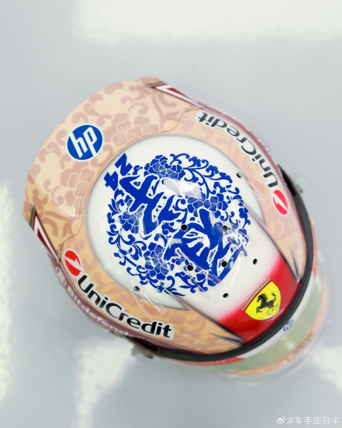 中国车手周冠宇更新社媒,公布自己本赛季在法拉利的首款头盔,并配文:我的法拉利F1头盔,大家久等了!1:2小头盔之后也会。
