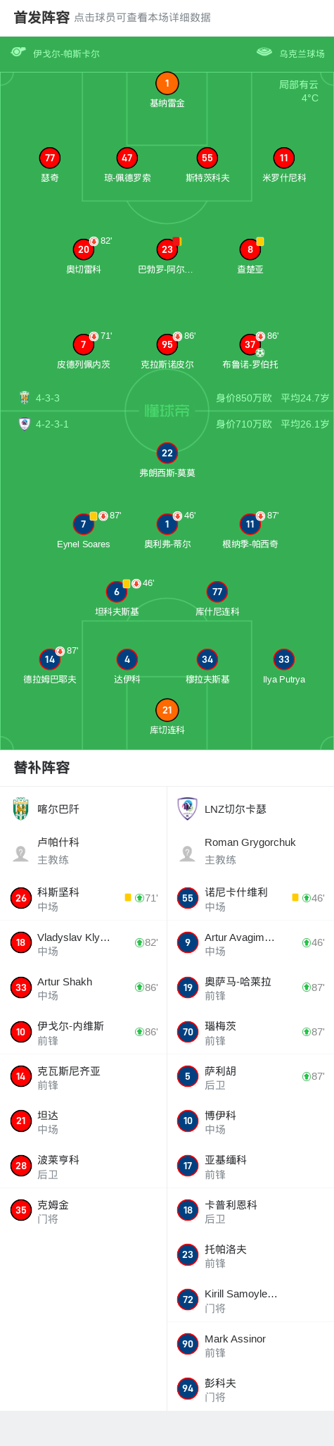 第30分钟,喀尔巴阡球队巴勃罗-阿尔瓦雷斯吃到第二张黄牌。
