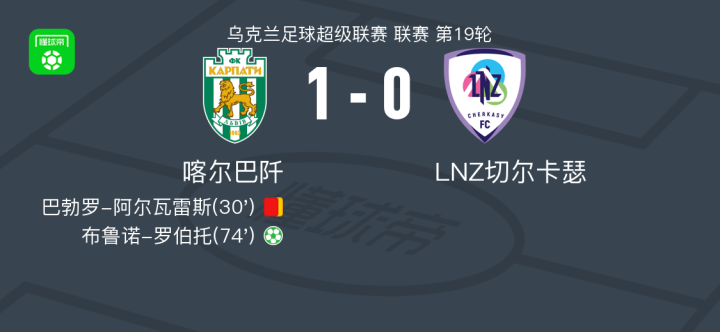 喀尔巴阡1-0LNZ切尔卡瑟,布鲁诺-罗伯托点射制胜