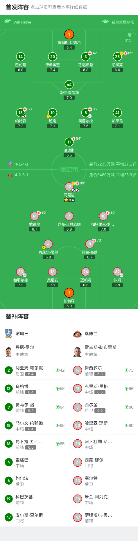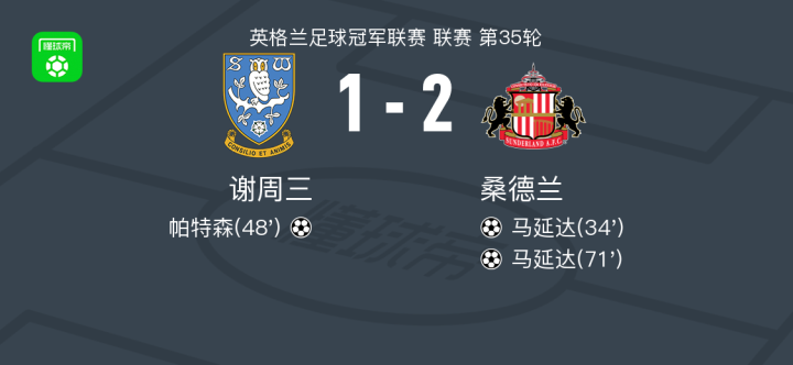 桑德兰2-1谢周三,马延达独中两元