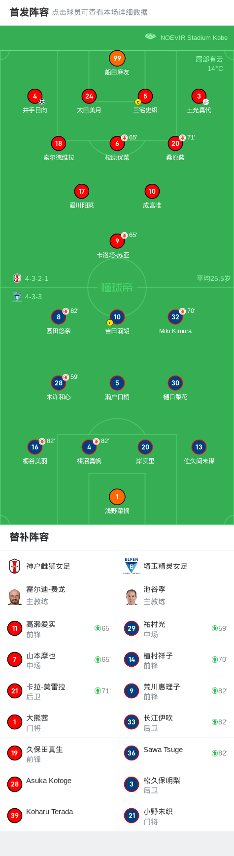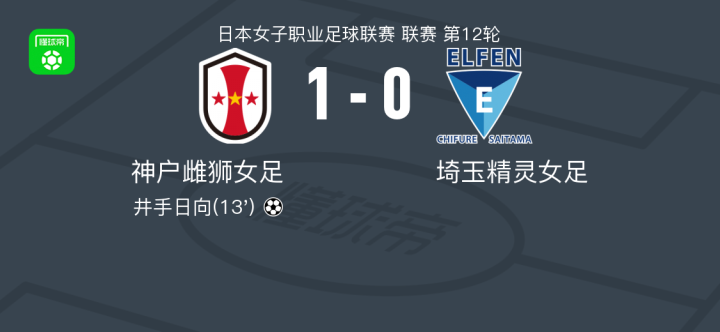北京时间3月1日,日本女子职业足球联赛第12轮,神户雌狮女足对阵埼玉精灵女足。比赛中,神户雌狮女足的井手日向成功攻入一球,凭借这一进球,神户雌狮女足以1-0战胜埼玉精灵女足。