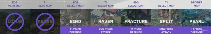 EDG选源工重镇,T1选隐世修所,EDG选裂变峡谷,T1选霓虹町,决胜图深海明珠。