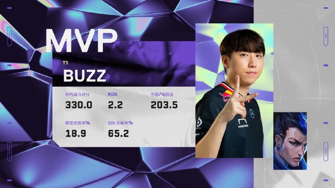 第17回合,T1进攻A区,BuZz状态极佳迅速定位团灭EDG,10-7。