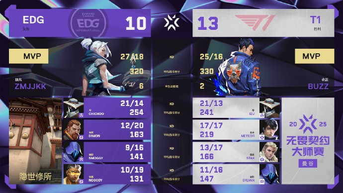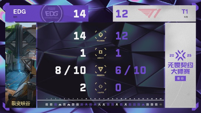 北京时间3月1日,无畏契约曼谷大师赛败者组决赛(BO5),EDG在图三中挽救一个赛点,并在首个加时中终结比赛,将总比分扳成1-2。