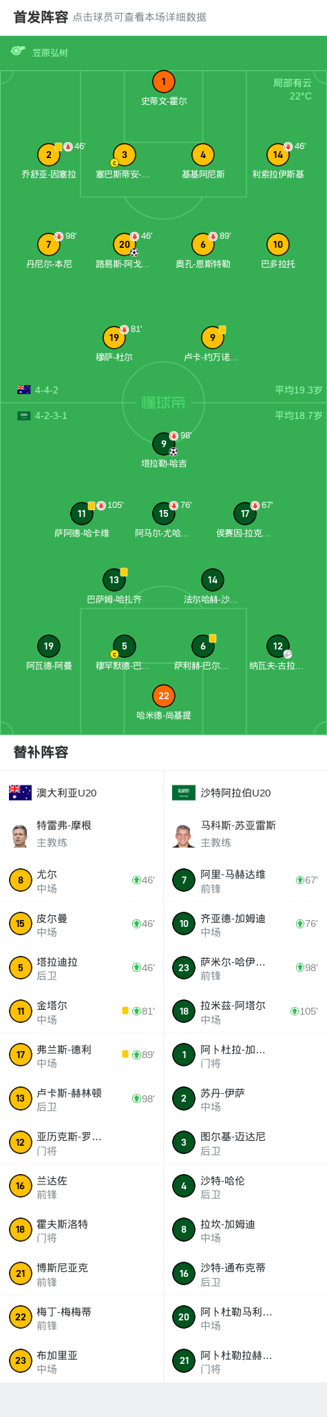 第45+3分钟,霍尔站位失误,哈吉禁区头球破门,沙特1-1扳平