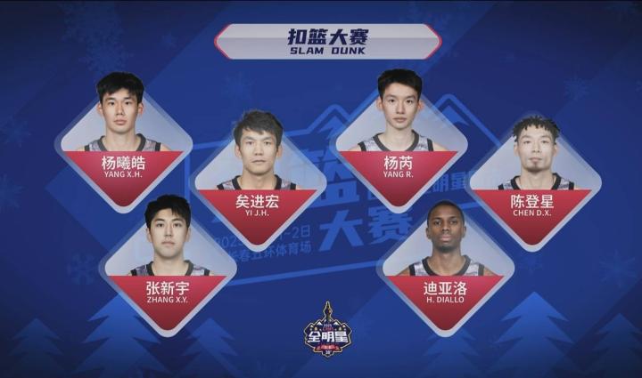 北京时间3月1日,CBA全明星扣篮大赛预赛,6人参赛,哈米杜·迪亚洛(山西)、杨芮(新疆)、矣进宏(北控)、张新宇(南京)、杨曦皓(特邀大学生球员)、陈登星(特邀中国人寿外卡球员)。最终迪亚洛、矣进宏、陈登星晋级决赛。