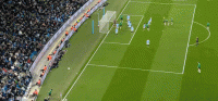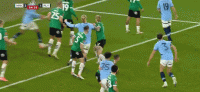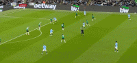 第12分钟,福登低射,皮球碰到后卫稍稍偏出球门