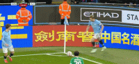 第14分钟,德布劳内开出角球,京多安甩头攻门顶高