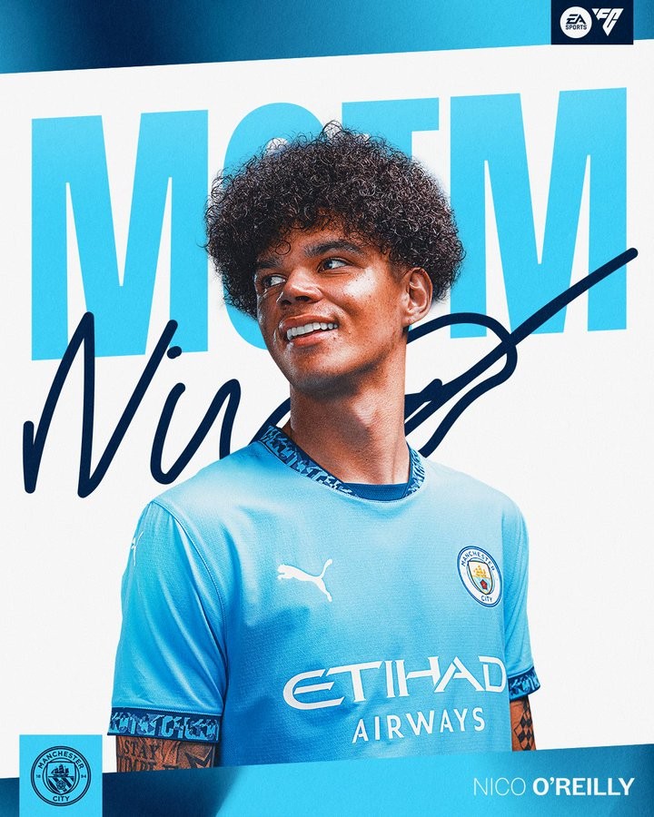 梅开二度,尼科-奥赖利当选全场比赛最佳+曼城队内最佳球员