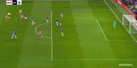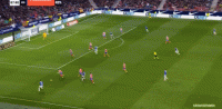 第4分钟,哈维-加兰传中,勒诺尔芒头球攻门高出