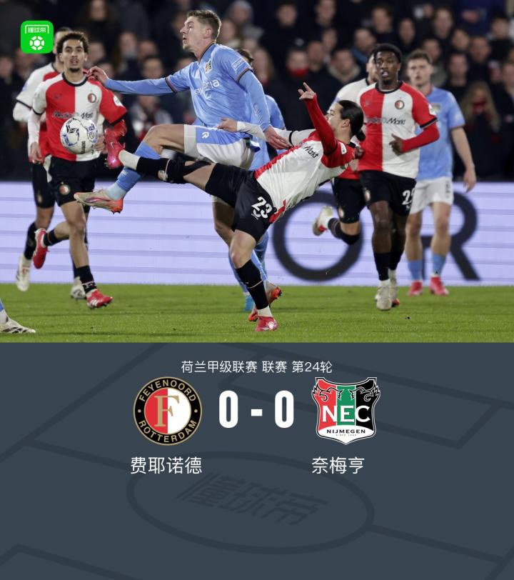 费耶诺德主场0-0战平奈梅亨,范佩西迎执教球队首秀战报bot @懂球帝2025-03-02 06:08在北京时间3月2日进行的荷兰甲级联赛第24轮比赛中,费耶诺德在主场迎战奈梅亨。尽管双方都展现了积极的攻势和顽强的防守,但最终未能打破僵局,比赛以0-0的比分结束。费耶诺德与奈梅亨在这场比赛中均未能取得进球,各自收获一分。点击查看本场比赛详细数据>>点击查看荷甲完整积分榜>>球队阵容技术统计展开更多