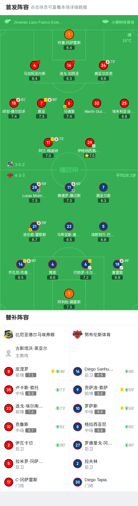 努布伦斯体育2-1比尼亚德尔马埃弗顿,佩德罗-桑切斯破门,Lucas Molina Canto建功